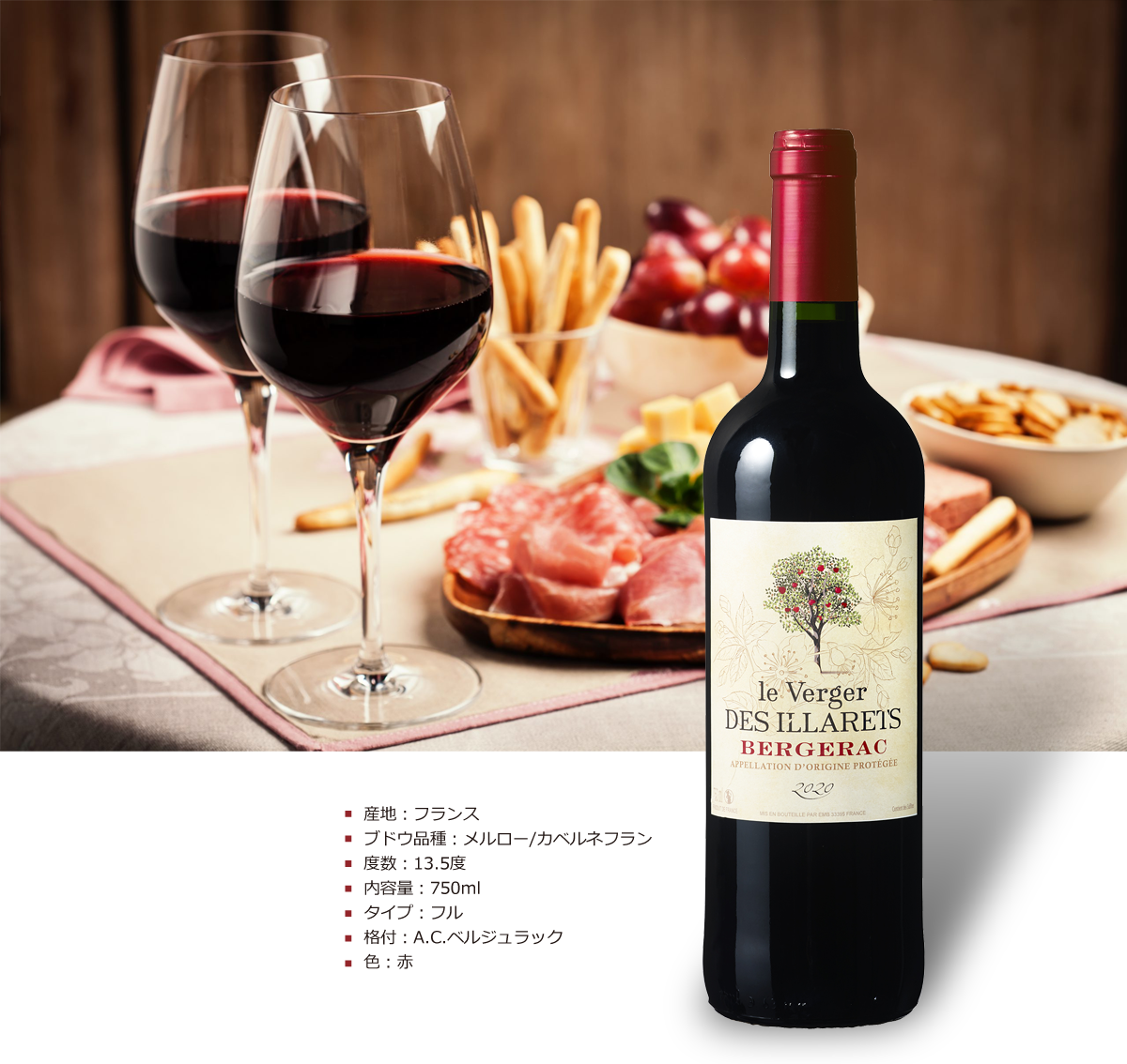 A.O.C.はベルジュラック地区ですが、畑はボルドーのカスティヨン地区に極めて近いところに位置するため、メルローを主体にボルドースタイルが強く出たワインに仕上がっています。