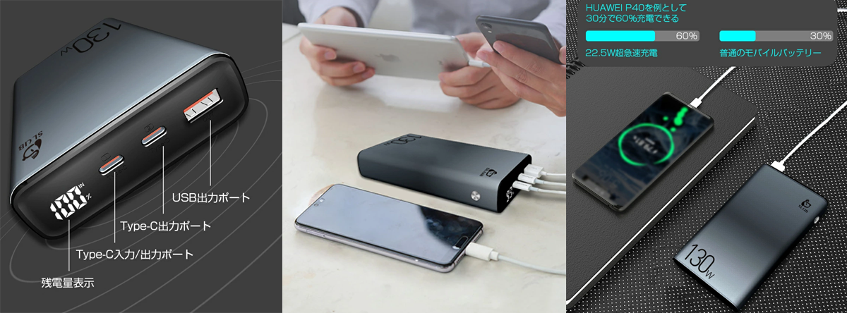 ype-C 100W出力 充電器 超急速充電 SCP/VOOC対応 三台同時充電 残電量表示 多重安全保護機能搭載 防災グッズ 12V 9V 5V 3A 5A PSE認証済